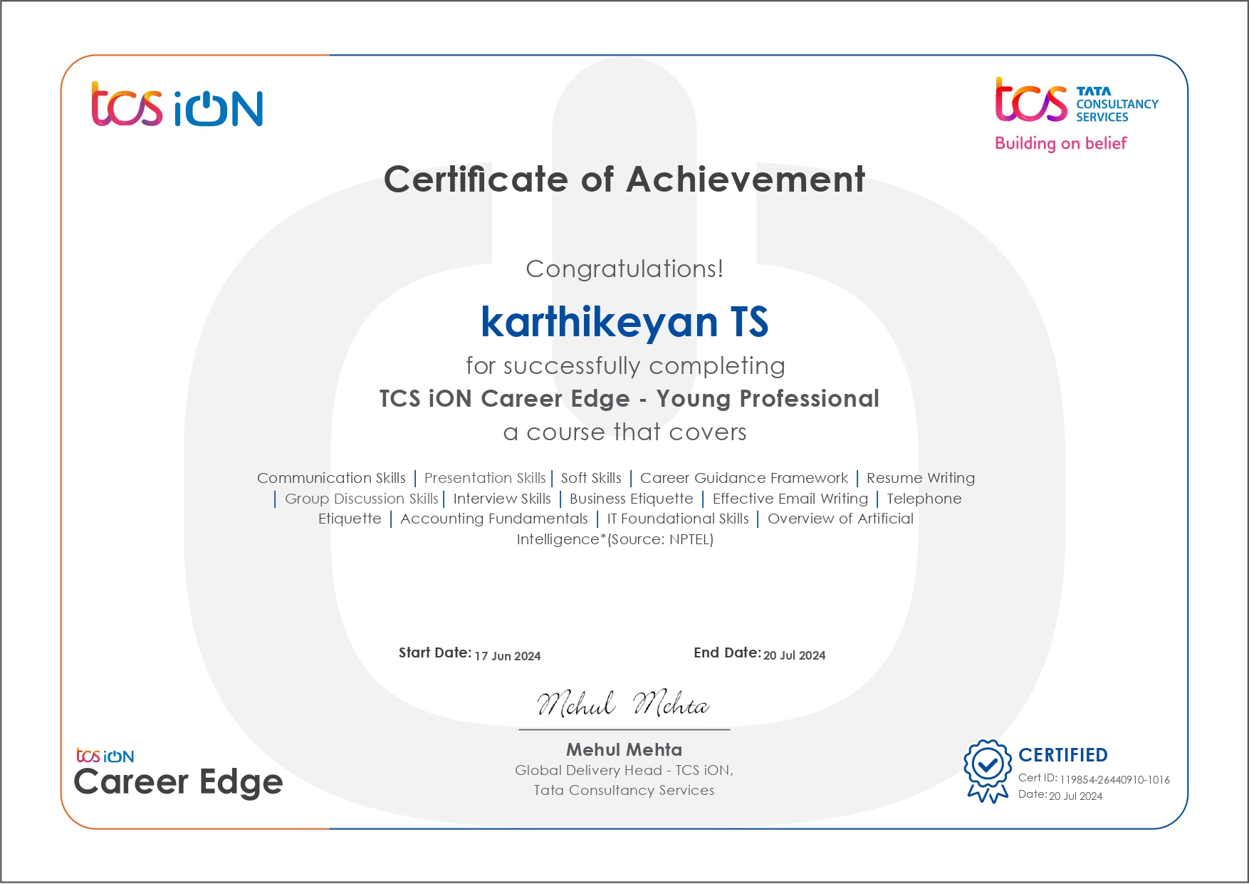 I aspire to join an organization where I can utilize my strengths and help achieve its goals. Guided by a passion for learning and a desire for excellence, I am committed to improving my capabilities and contributing positively to the organization.
